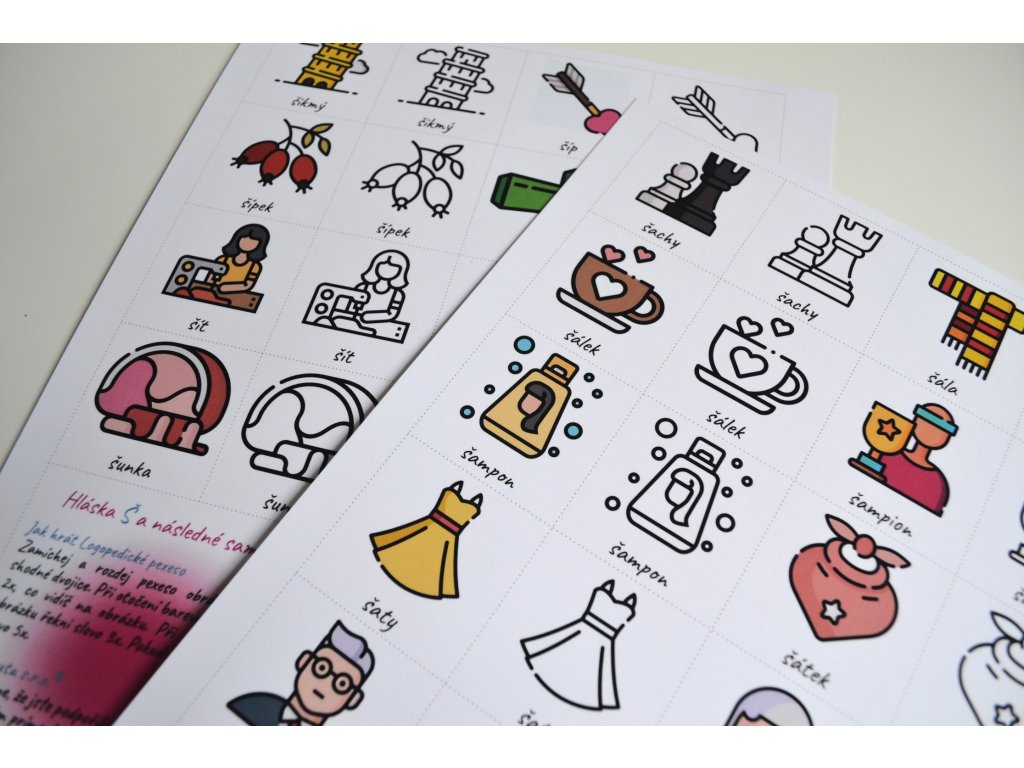 - každé pexeso je zaměřené na konkrétní výslovnostní jev (Š na začátku slova, atd.)