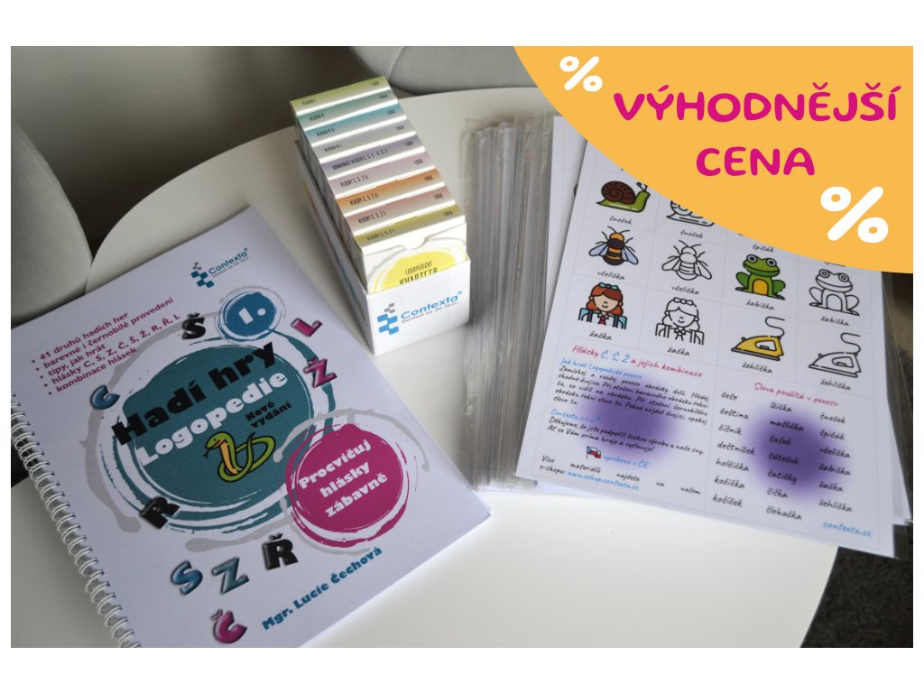 - Kompletní sada 9 logopedických kvartet i s praktickou krabičkou (C, S, Z, Č, Š, Ž, R, Ř, L, kombinace hlásek CSZ-ČŠŽ)