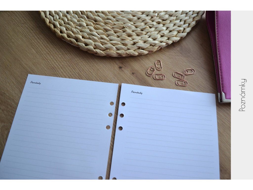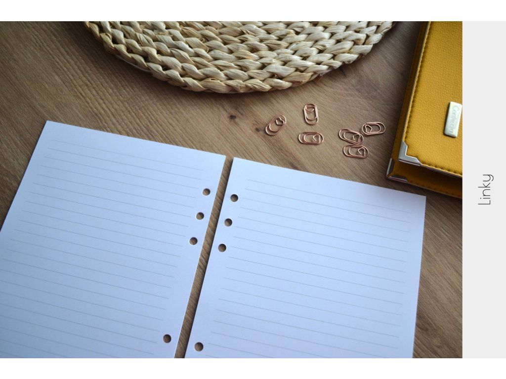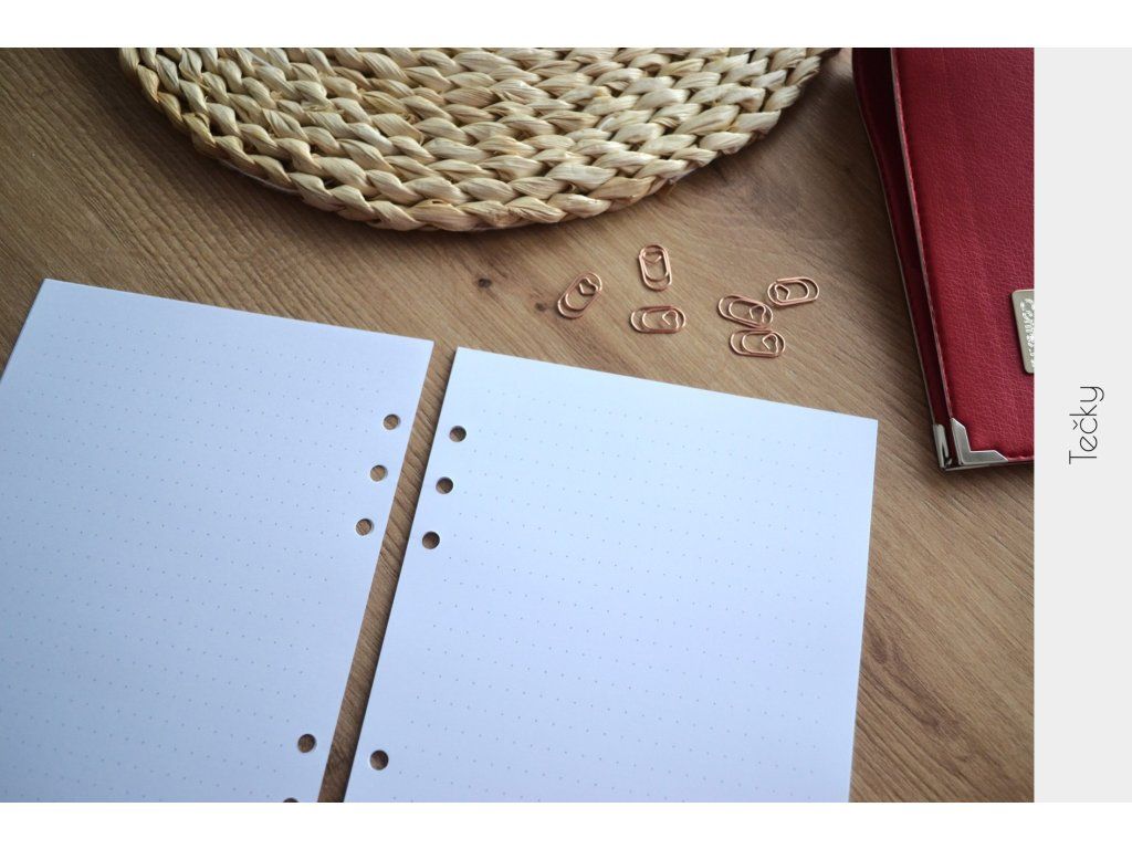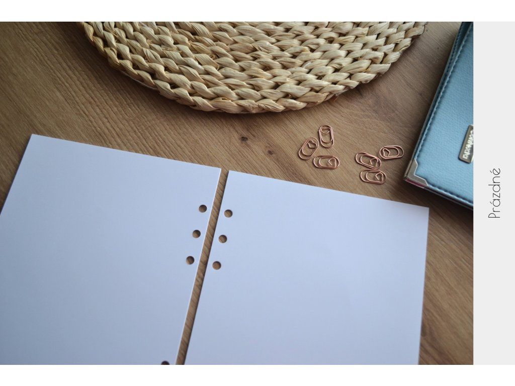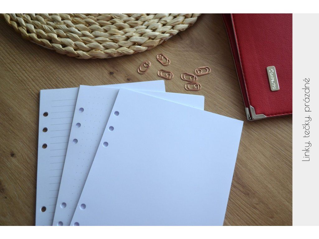 Už máš elegantní koženkové desky? Výborně. Teď přichází na řadu naše maličkost – náplně. A že máme co nabídnout! Každá stránka je z krásně hebkého 100g papíru se satinovaným povrchem, po kterém tužka klouže jako po másle (a který si budeš chtít pořád osahávat, jen tak, protože je fakt tak příjemný).