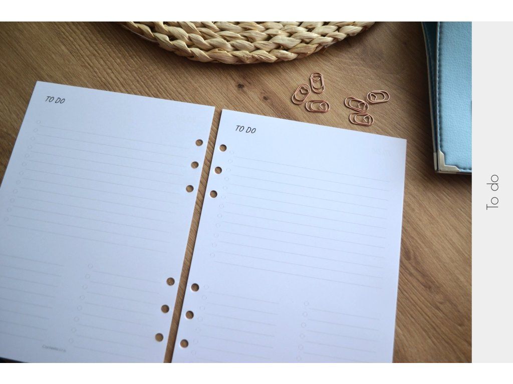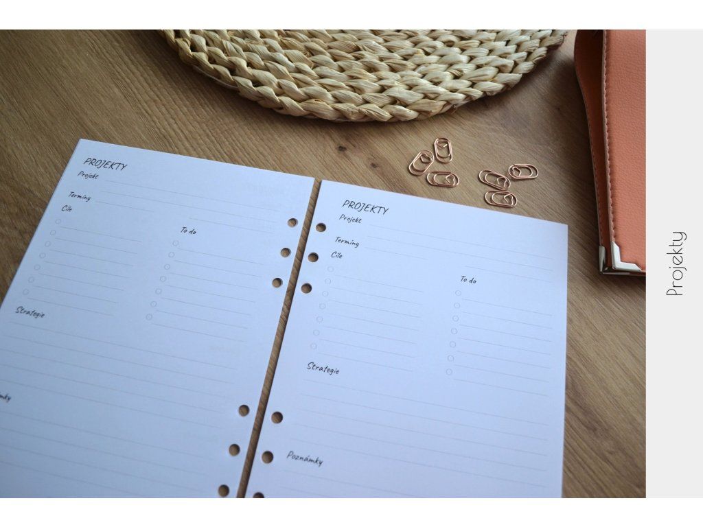- To do plány (12 stran): Místo pro všechny větší i menší úkoly, termíny a přání, co nesmí zapadnout.