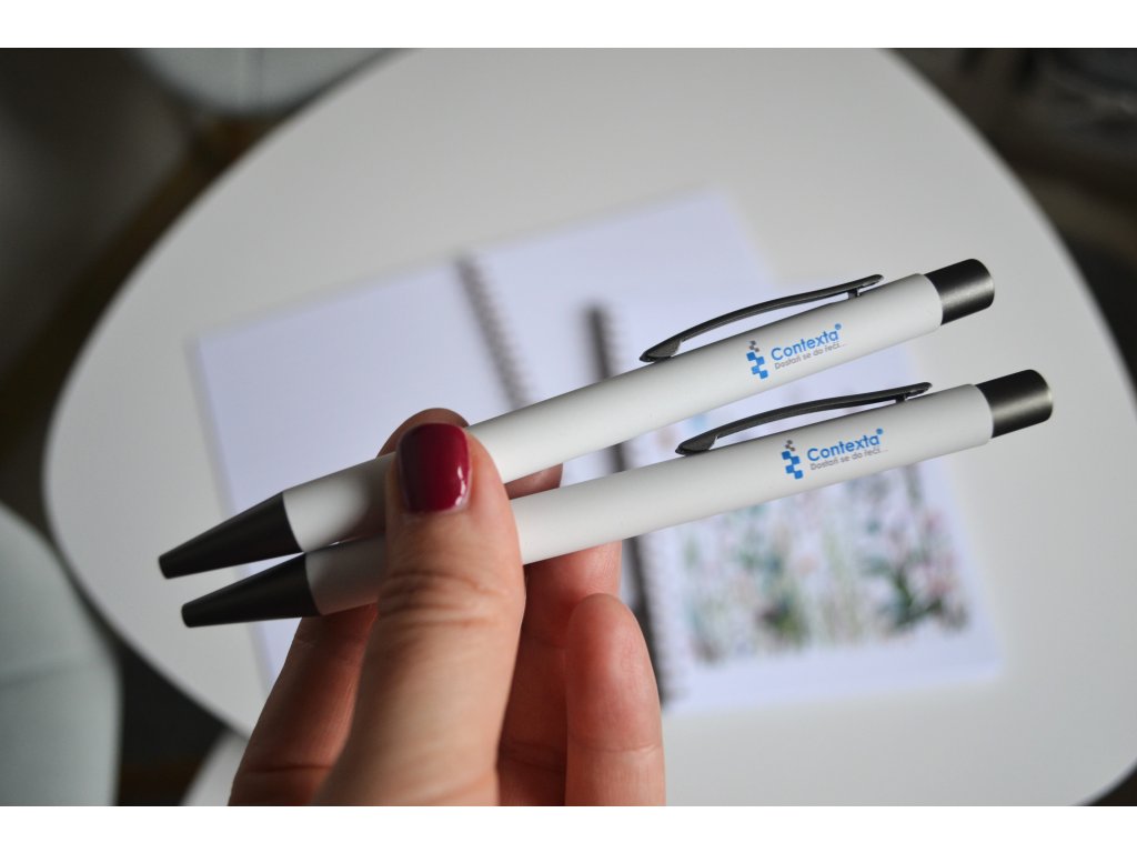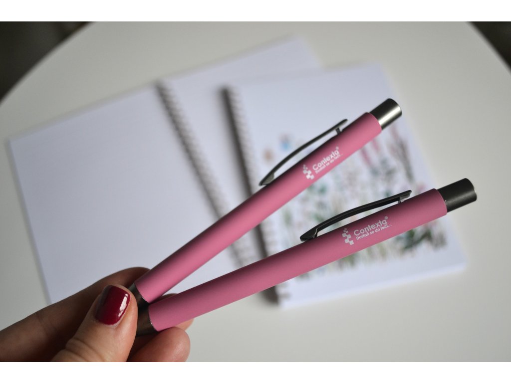 Jsme stylové, hebké na dotek a padneme krásně do ruky. Jedna růžová, jedna bílá s logem Contexty. Obě připravené stát se Tvou každodenní parťačkou. Nejsme jen obyčejné propisky. Jsme propisky, po kterých sáhneš automaticky – při přípravě hodin, opravování, plánování projektů nebo když si zapisuješ nápad, který nechceš ztratit. Jednoduše pro to, že jsme krásné a nádherně kloužeme po papíru. Jednu vadu na kráse ale máme... Nevymyslíme za Tebe žádný nápad ani vzkaz...